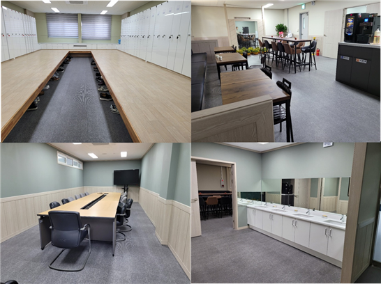< 근로 환경 개선의 복지 시설인 탈의실, 휴게실, 대회의실, 세면장 >
